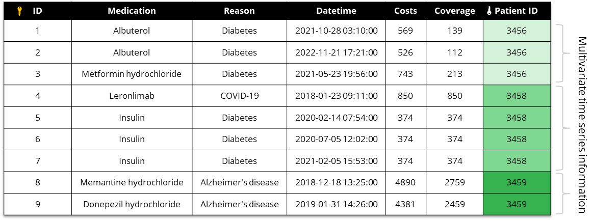 <figure><img src="https://content.gitbook.com/content/U61B9DqtWCNO3Z30vnjh/blobs/RvsKlVJ1I4u6ywHD6dng/image.png" alt=""><figcaption><p>Example of a linked table (multiple rows can be linked to a same patient, describing a series of time events for that patient)</p></figcaption></figure>