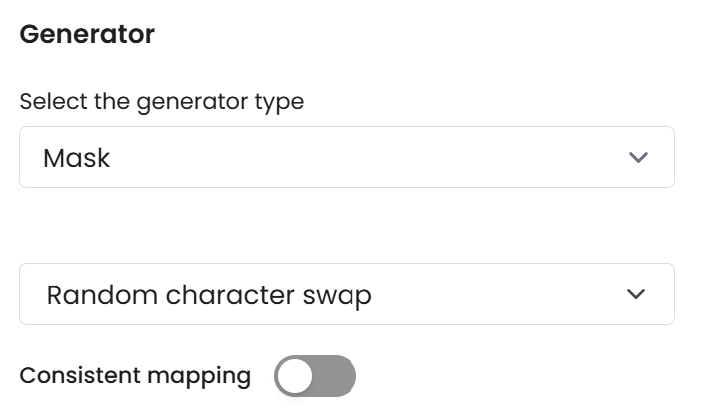 The Random Character Swap function replaces individual characters in categorical values while preserving the structure of punctuation, spaces, and symbols. Characters are swapped within their respective categories (letters with letters, digits with digits), ensuring that the field's overall format remains usable, or in other words, the original data type and structure of each field (letters, numbers, symbols) are preserved. Note that it preserves non-alphabetic characters (e.g., punctuation, spaces).