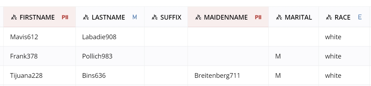 First_Namecolumn, typically lack this context. For instance, aFirst_Namecolumn contains only first names, making it challenging for NLP models to accurately identify them as such without additional context.