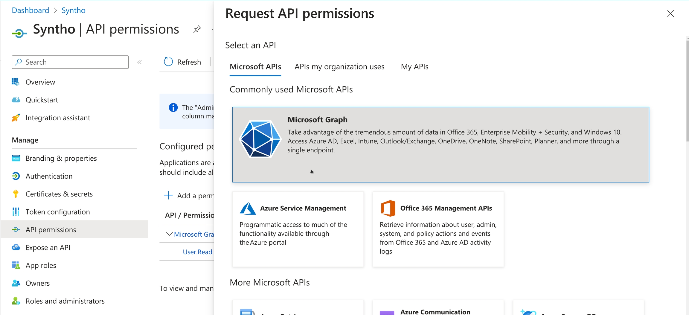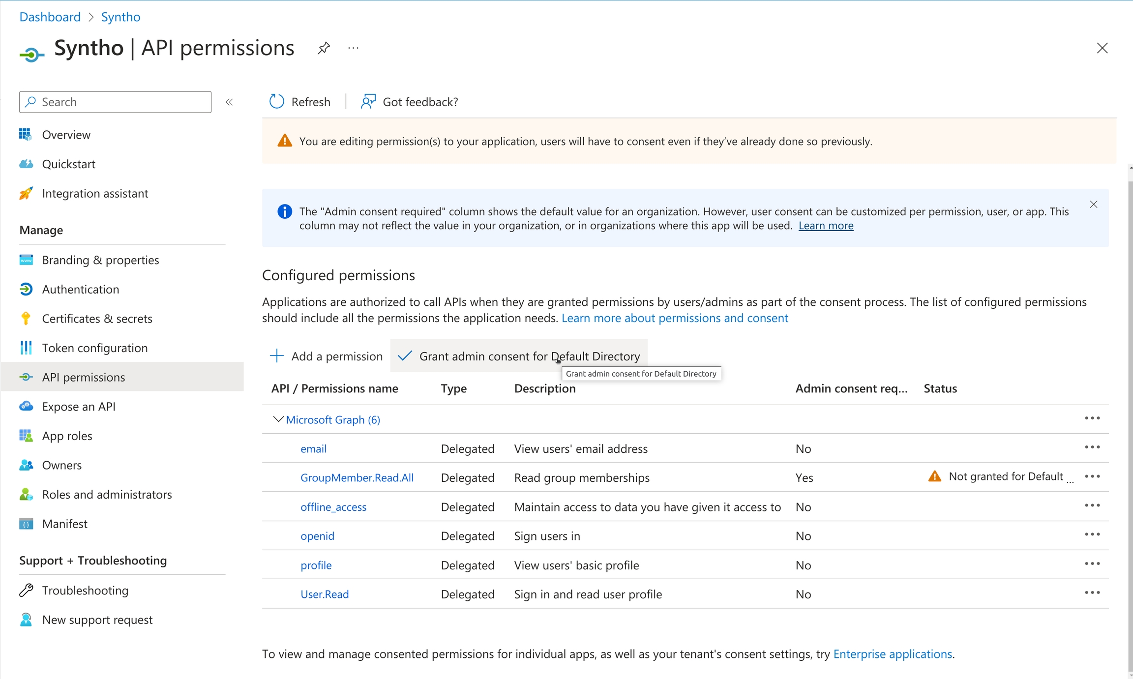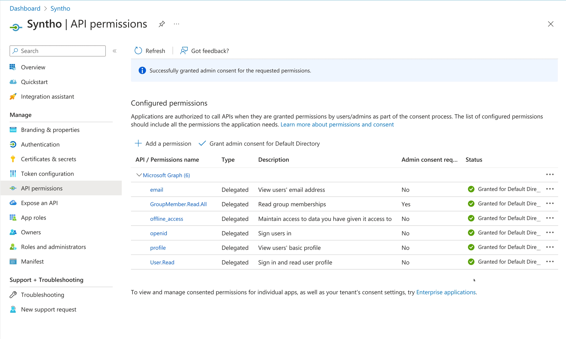 First, register Syntho as as an application in the Azure Active Directory Portal: