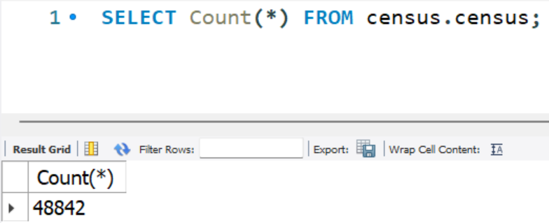 1. Maintain a minimum **column-to-row ratio of 1:500** for privacy and algorithmic generalization. With 15 columns, aim for at least 7,500 rows; our example database exceeds this with 48,842 rows (see below illustration).
