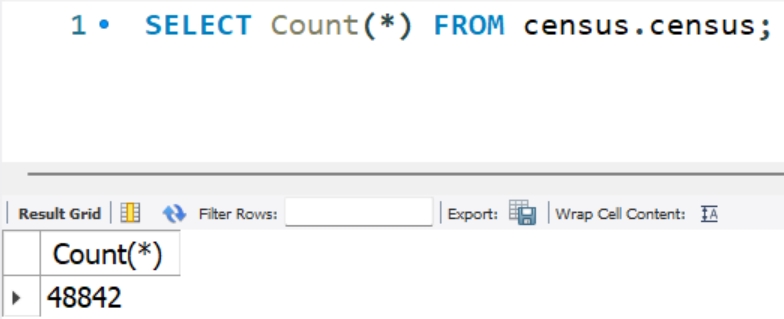 Maintain a minimum column-to-row ratio of 1:500 for privacy and algorithmic generalization. With 15 columns, aim for at least 7,500 rows; our example database exceeds this with 48,842 rows (see below illustration).