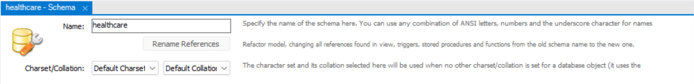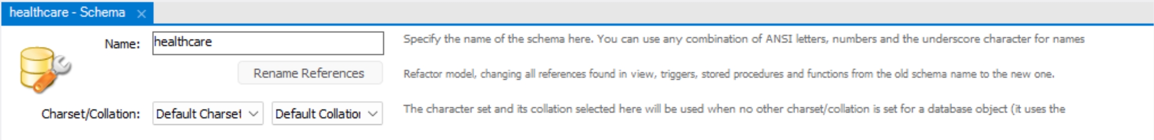 Ensure the schema is accurately named; our new schema is titled "healthcare."