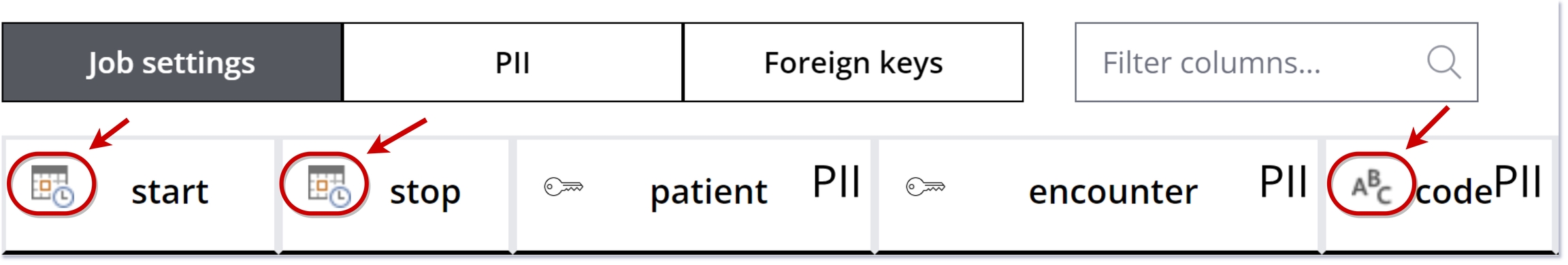 Use the PII scanner to identify sensitive columns.