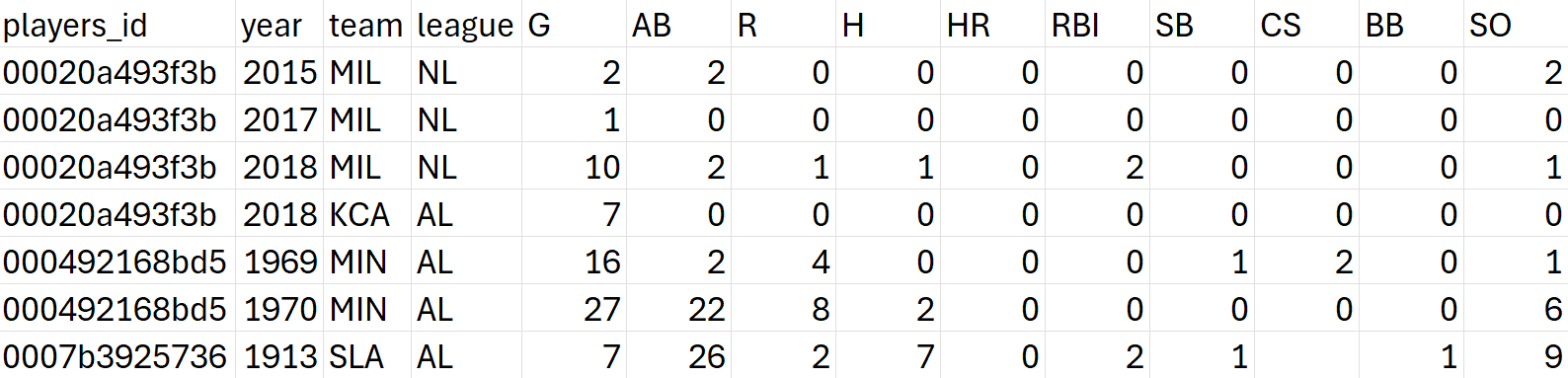 * **Source**: [Lahman Baseball Dataset](https://lahman.r-forge.r-project.org/).
